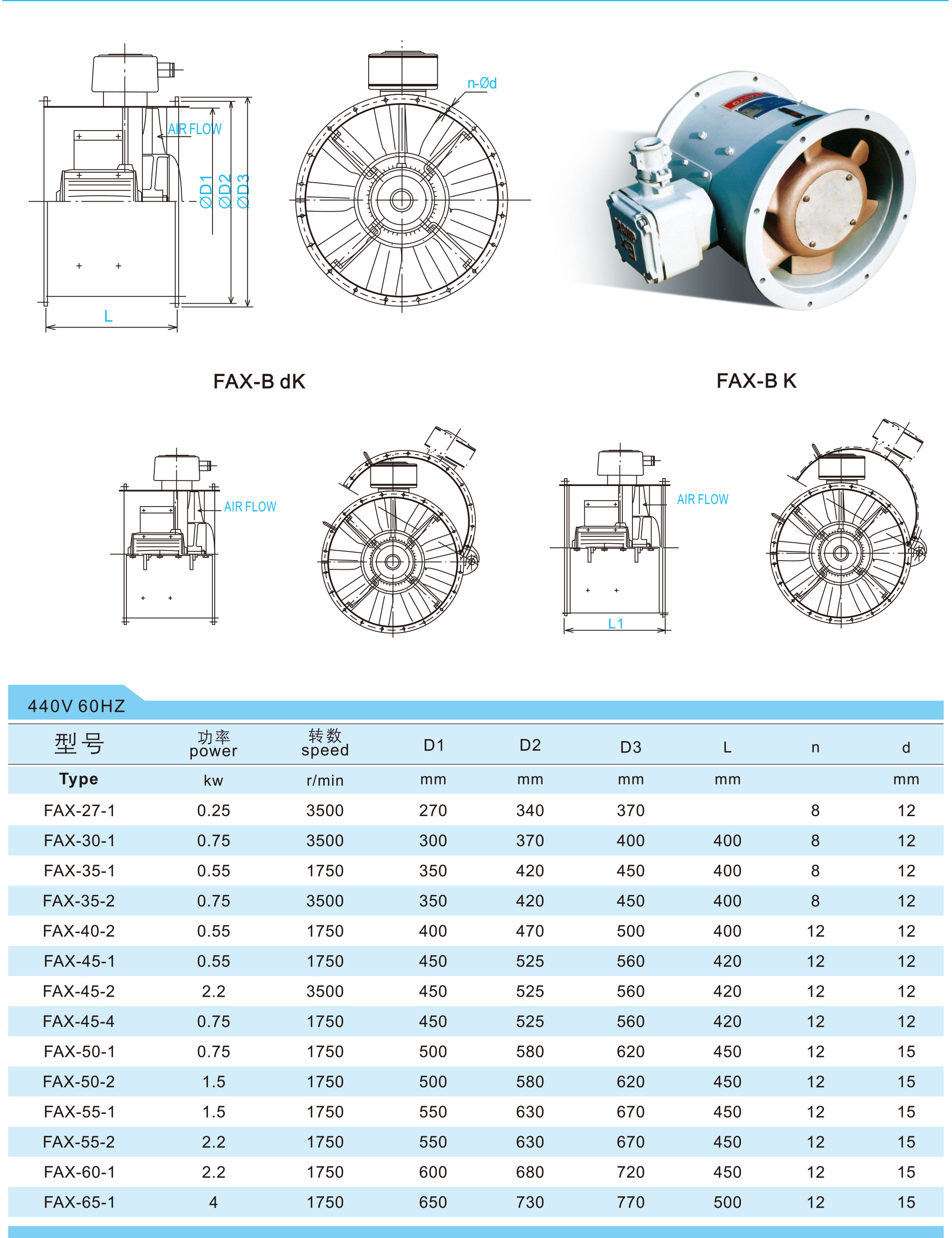 FAX系列船用防爆轴流通风机制成从防爆电机端正视,叶轮按顺时针方向旋转的结构。