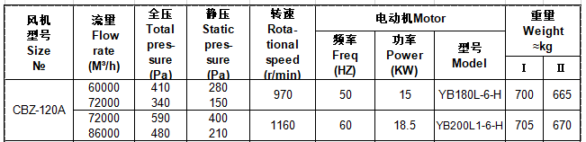 CBZ-120A 船用防爆轴流通风机有三种结构,即I型(甲板式)、Ⅱ型(管道式)和Ⅲ型(隔舱式)。整机结构,均为无火花型。