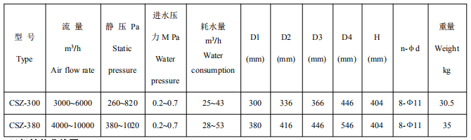 CSZ-300 船用水力驱动驱气轴流风机可提供抽风型式或送风型式的结构,两者不能通用。