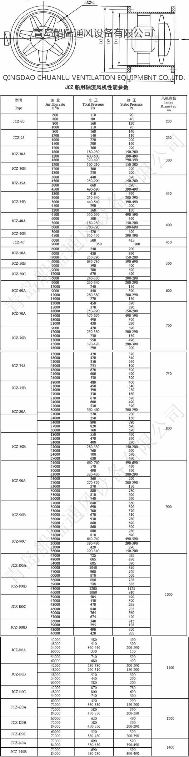 JCZ series marine axial-flow fans is designed and manufactured according to the standard of GB11864《Marine or Navy Axial Flow Fans》and《The manufacture Rules of Sea-going Steel Ships》which approved by the Register of the People's Republic of China.