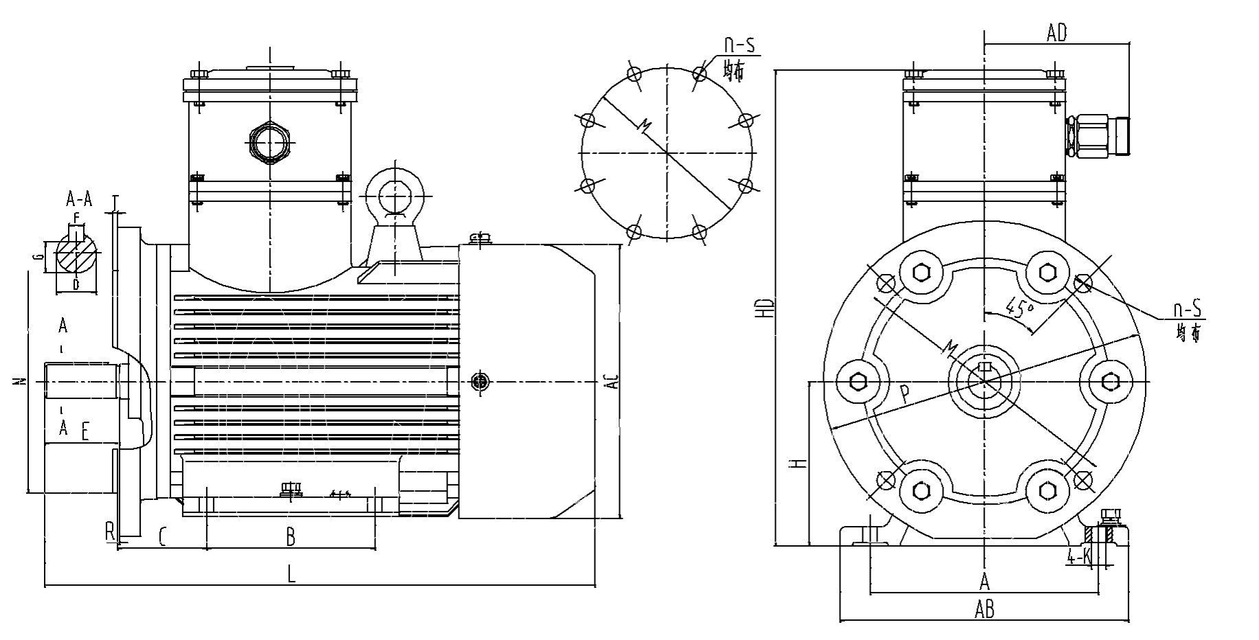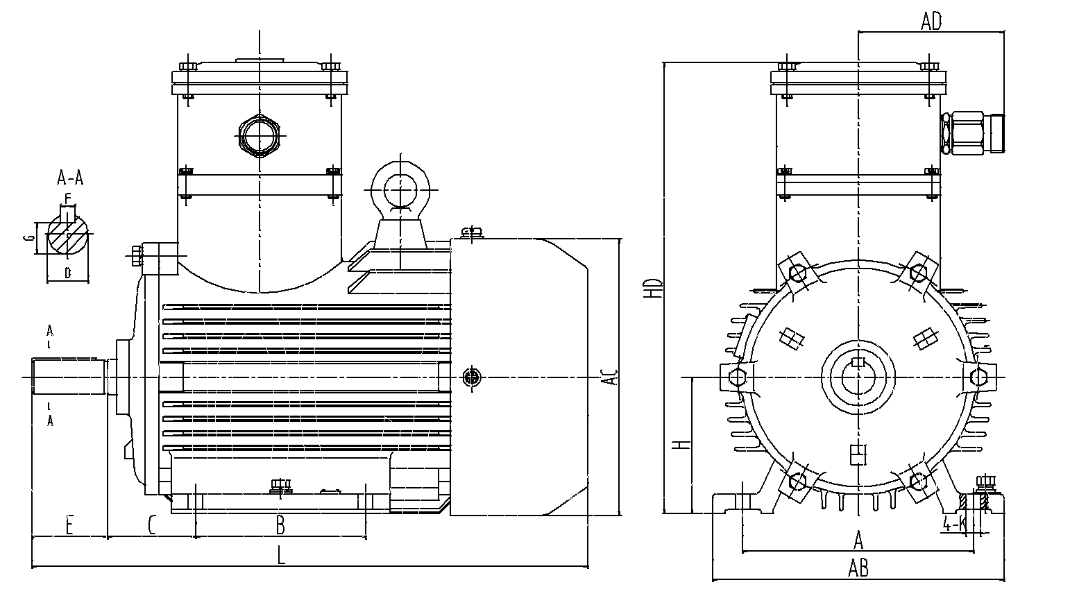 YBX3-H series motors are totally-enclosed, fan-coolled, squirrel caged type of explosion-proof three phase marine asynchronous motor. efficiency of 2~6 poles motors could arrived NEMA Premium standard. The motors are designed and manufactured according to GB3836.1 “Electrical apparatus for explosive gas atomosphere-part1: General requirement” and GB3836.2 “Electrical apparatus for explosive gas atmosphere-part2:Flameproof enclosure “d ” .the motors have advantage of high efficiency、energy-saving、big locked-rotor torque、low noise、small noise、smaller vibration、 safe and reliable operation and good appearance, etc. the output、mounting dimensions and other corresponding relationships comply with IEC standard.